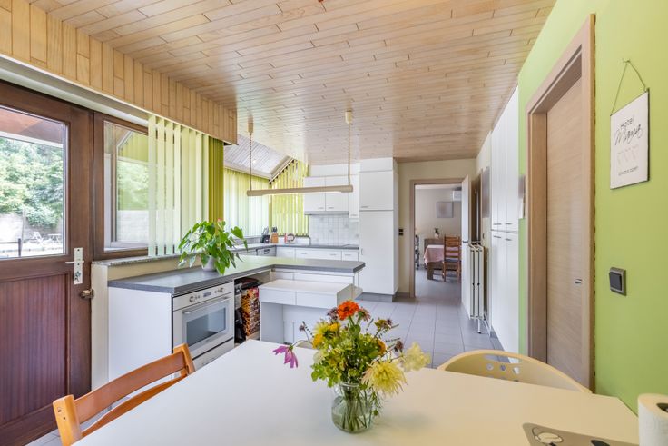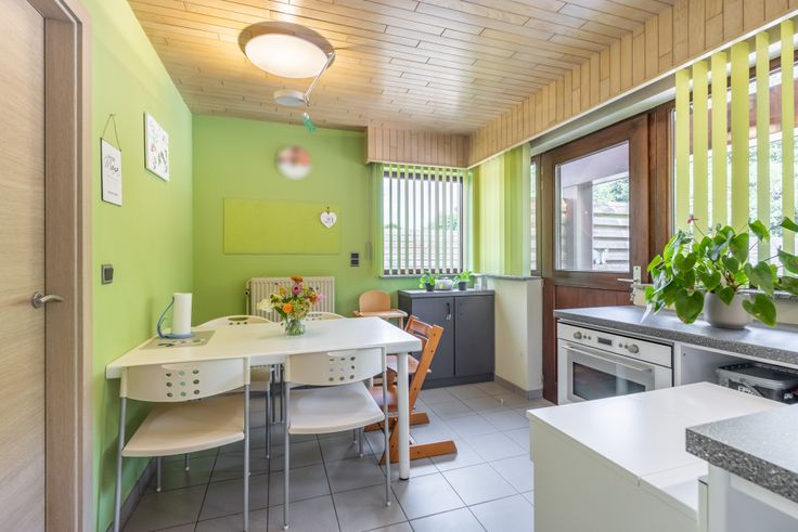 In de lichtrijke leefruimte geniet u van een gezellige tv-hoek en eetkamer die grenst aan de volledig uitgeruste keuken. Deze is tevens voorzien van een aparte ontbijthoek die toegang biedt tot de tuin. Door de aangrenzende berging ervaart u hier een enorm gebruiksgemak tijdens het koken.