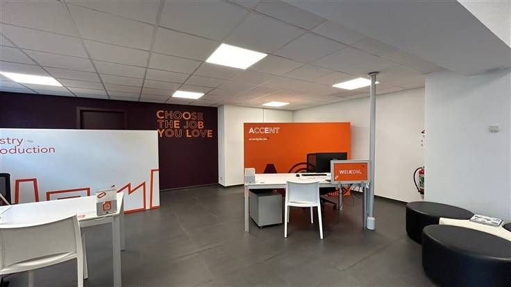 Bij het betreden van het kantoor valt meteen de professionele uitstraling op, dankzij de strakke inrichting en het gebruik van hoogwaardige materialen. De grote raampartijen aan de voorkant zorgen voor veel natuurlijke lichtinval en geven een aangenaam werkklimaat.