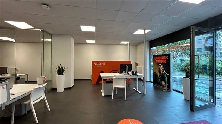 Deze kantoorruimte biedt een combinatie van functionaliteit en stijl, en is perfect voor bedrijven die hun professionele imago willen versterken.