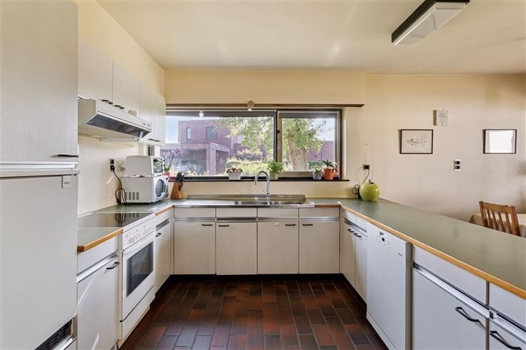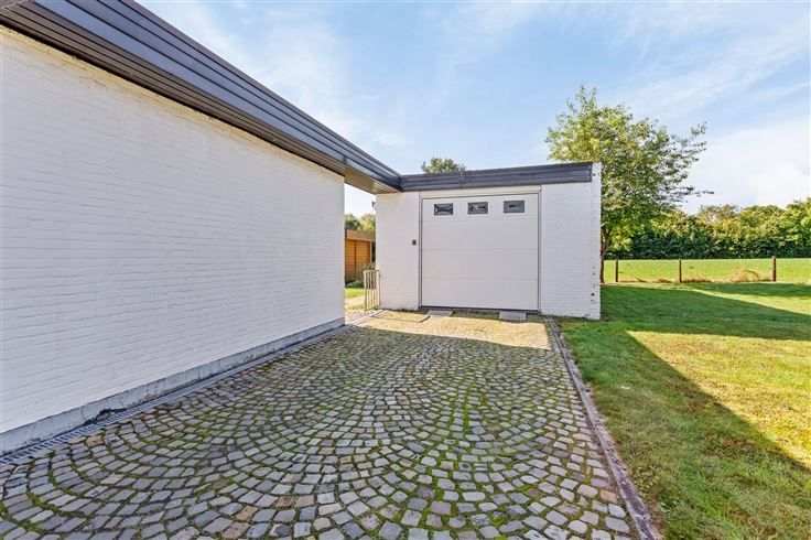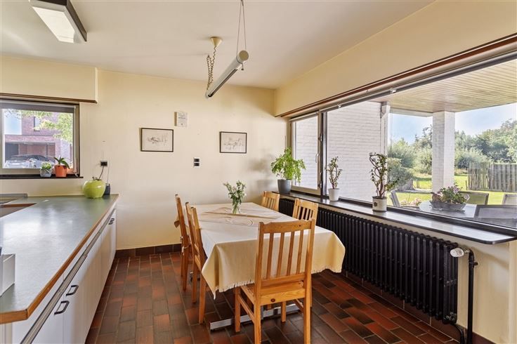 Welkom in deze aangename gelijkvloerse woning te Herk-de-Stad De woning wordt te koop aangeboden voor een adviesprijs van 329.000 €. Biedingen op of boven de prijs zijn toegelaten. Rechts van de inkomhal komen we in de leefruimte met zithoek en eetplaats (43 m²) terecht met zicht op de tuin. De houtkachel zorgt hier voor extra gezelligheid. Via het grote schuifraam kunnen we naar het overdekte terras en de tuin. Vanuit de living kunnen we naar de ruime keuken (22 m²) met aparte berging (4 m²). Ook van hieruit kan je naar het gezellige, overdekte terras en de zuidgerichte tuin. Verder vinden we hier nog een technische ruimte (5 m²) en een wasplaats (12 m²) met toegang naar buiten. Links van de inkomhal met ingebouwde kasten is er een gastentoilet, drie slaapkamers en een vernieuwde badkamer met ruime douche. Slaapkamer 1 met ingebouwde kasten en wastafel (12 m²) Slaapkamer 2 met ingebouwde kasten en wastafel (12 m²) Slaapkamer 3 met ingebouwde kasten en badkamer en suite! (16 m²) De badkamer is toegankelijk via de slaapkamer én via de gang. Op het tuinniveau is er een garage van 21 m² (met sectionale poort met code), een werkhuis van 7 m² en een groot tuinhuis met berging/fietsenstalling van 30 m² Zonnepanelen aanwezig sinds 2023 Dit gerieflijk en zeer verzorgd huis is ideaal voor wie op zoek is naar een gelijkvloerse woning! Voor een rondleiding en meer info, bel naar Hans 0476/39 33 09 of