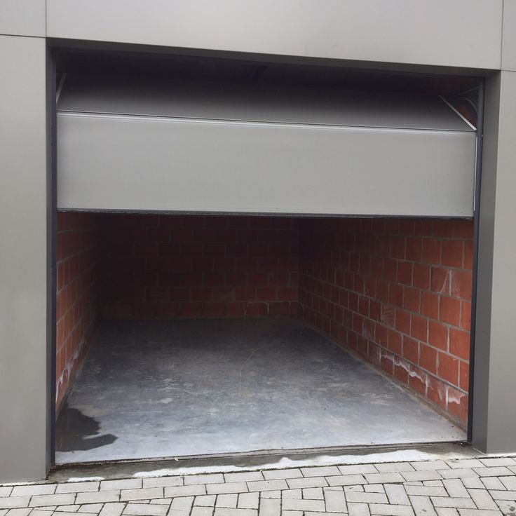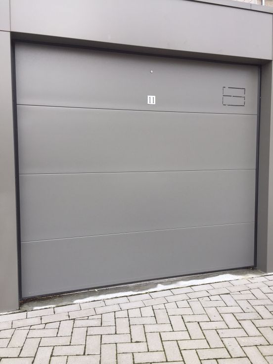 Recente garage box te koop in Residentie Stefanie op de markt in Geraardsbergen met elektrische sectionaal poort met afstandsbediening op privé terrein met slagboom.