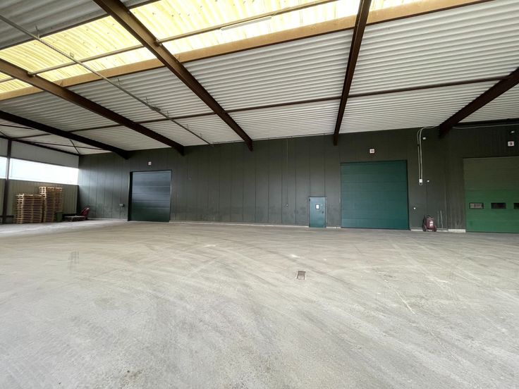 Deze unit is toegankelijk via een sectionale poorten met een doorrijhoogte van ongeveer 5m30. De hal zelf heeft een vrije hoogte van ongeveer 5m75.