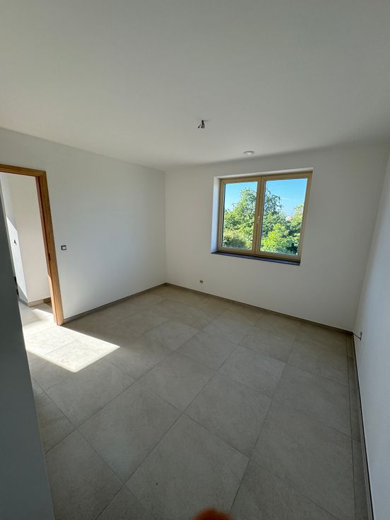 Woning beschikt op het gelijkvloers over een ruime inkom, leefruimte met praktische keuken en berging.
