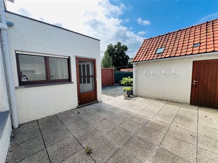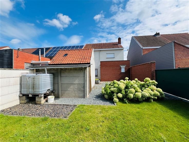 Bovendien beschikt de woning over een praktische garage, ideaal voor het parkeren van uw voertuig of als extra opbergruimte. Vanop het terras kan u genieten van de grote, mooi aangelegde en omheinde tuin met buitenberging. Het zijpoortje biedt een uitweg naar de straat.