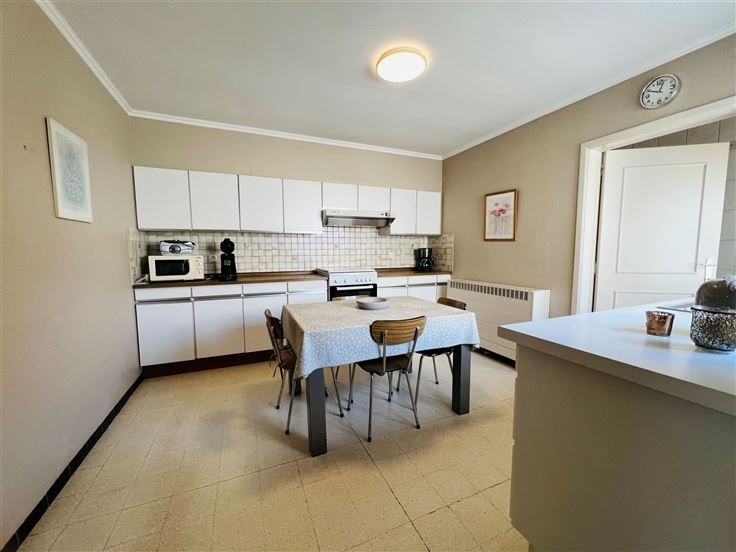 De keuken is uitgerust met een elektrisch vuur, oven & gootsteen en biedt voldoende ruimte voor een eethoek. De grote raampartijen zorgen voor een aangename sfeer in het hele huis.