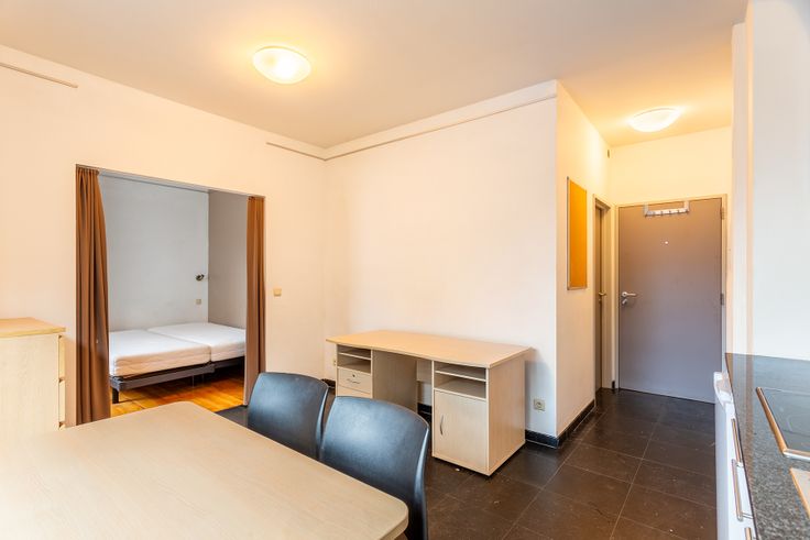 Deze knusse studio beschikt over moderne voorzieningen en is slim ontworpen om ruimte optimaal te benutten. Met een comfortabele slaaphoek, een eigen badkamer en keuken, is het een populaire keuze onder studenten.