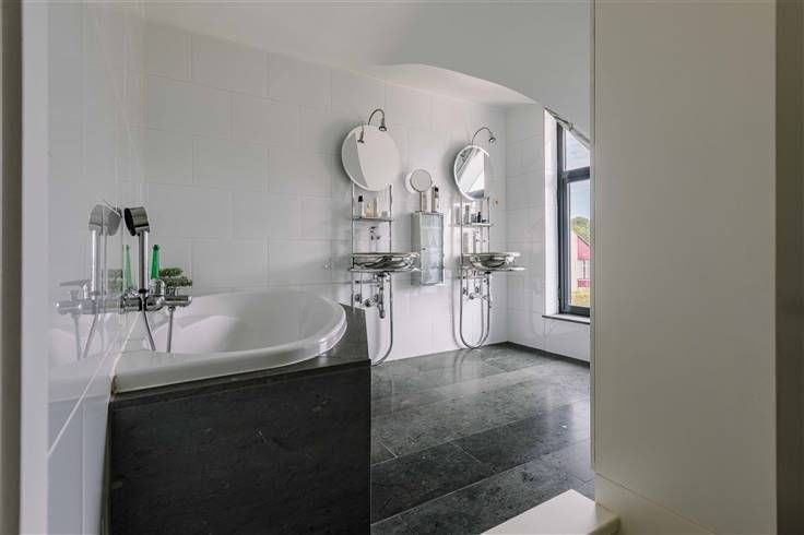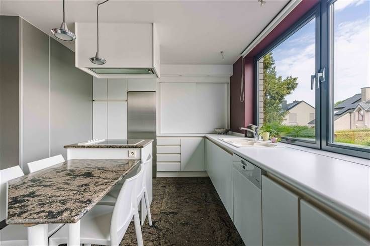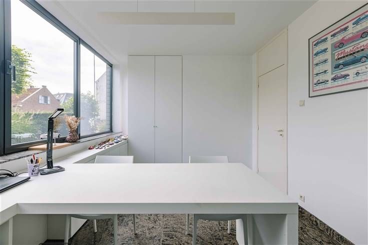 ZOTTEGEM - Bent u op zoek naar een veelzijdige bel-etage met grote garage en in het centrum van Sint-Maria-Oudenhove? Dan is dit pand misschien wel iets voor u! De belangrijkste kenmerken in een notendop: ·Ideaal voor combinatie wonen en uitoefenen vrij beroep ·Gelegen in het centrum van Sint-Maria-Oudenhove ·Voorheen kapsalon met wastafels en kaptafels ·4 slaapkamers ·Hoogwaardige materialen (parket, natuursteen) ·Zonnepanelen aanwezig ·Zuidwest gericht terras met tuin - biedt veel privacy ·Nabij invalswegen en openbaar vervoer ·Grote garage met werkbrug - ook geschikt voor mobilhome, trailer,... ·Richtprijs: €595.000 Zo ziet de woning eruit: Op het gelijkvloers: het huidige kapsalon, een ruime bureauruimte, een apart toilet, een wasplaats, stookplaats en doucheruimte. Rechtstreekse toegang naar de tuin. Op de eerste verdieping: de lichtrijke living met houthaard en parketvloer geeft uit op het terras met zicht op de tuin. De eetplaats en de keuken met eiland en voorzien van alle comfort. Een apart toilet. Op de tweede verdieping: 2 ruime slaapkamers voorzien van ingemaakte kasten, de badkamer voorzien van een ligbad, douche, dubbele wastafel en een toilet. Een derde kleinere slaapkamer. Verder een ruime zolderkamer met ingemaakte kasten. De volledig aangelegde Zuid-West gerichte tuin met terras en waterpartij biedt zeer veel privacy. Extra troef: grote oprit en de zeer ruime garage voor meerdere wagens,