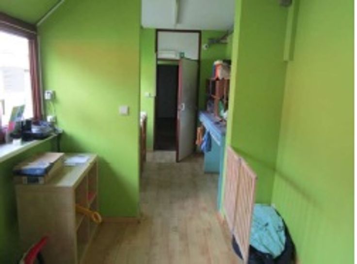 Gelijkvloers : inkomgang naar het achtergebouw met speelruimte en slaapruimte sanitair
