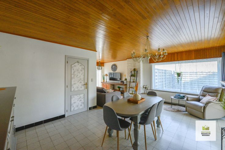 Gelegen in een woonwijk, in een doodlopende straat, ideaal om er te wonen voor uw opgroeiende kinderen, bovendien op wandelafstand van centrum Wingene. Indeling: Eens we de inkomhal met afzonderlijk toilet gepasseerd zijn betreden we de woonkamer. Deze is L-vormig, ideaal voor iemand die een speel- of bureauhoek wil maken. Doordat er grote raampartijen zijn is het heel lichtrijk, leuk meegenomen is het uitzicht op de straat. De keuken is ruim en zeer aangenaam door de aansluiting op de veranda en het zicht op de tuin. Aansluitend is er een koele berging en de garage die tevens dienst doet als berg- en wasplaatsruimte (automatische poort). Via de veranda bereiken we het terras, de tuin en het overdekt terras en de buitenberging. Op de eerste verdieping zijn er 3 grote slaapkamers en een badkamer met toilet. Er is nog een kleine kamer die ideaal dienst kan doen als huisbureau. Via een schuiftrap betreden we de grote geïsoleerde (berg)zolder. Geen renovatieverplichting! Voor meer info bel ons op 050 96 02 45 of via louise@vastgoedwm.be!
