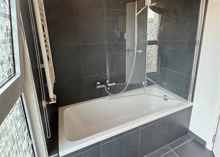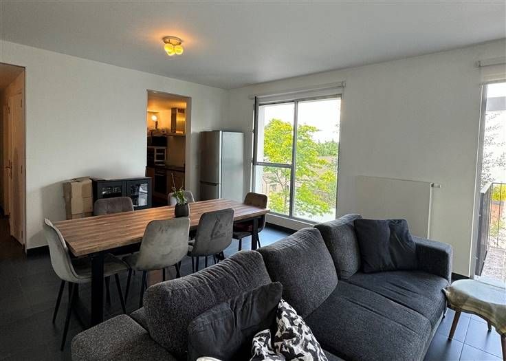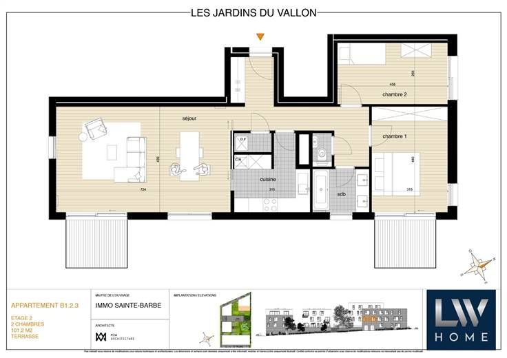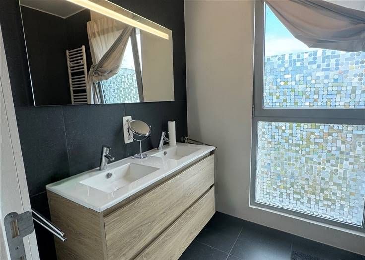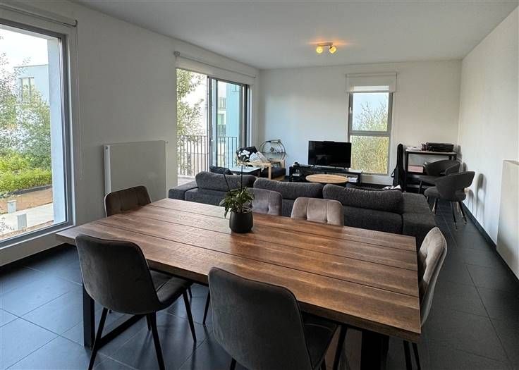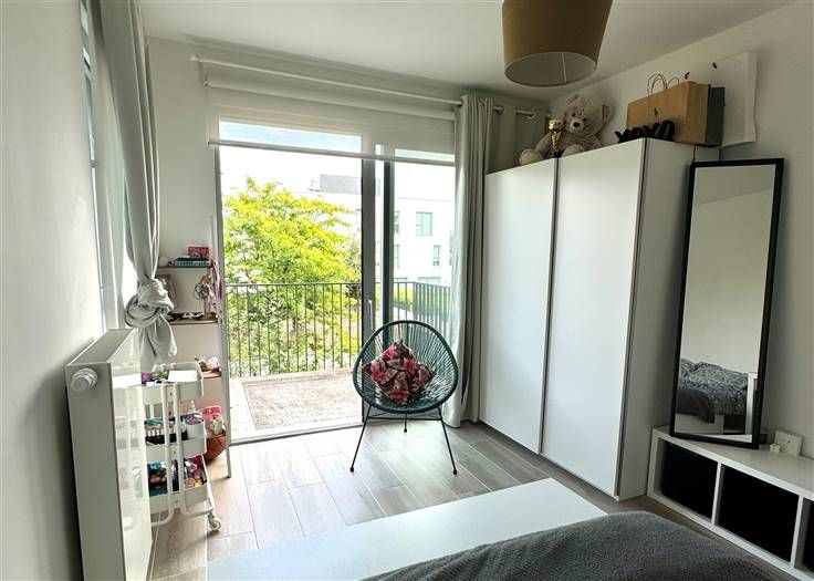 Sorry er is geen nederlandse vertaling beschikbaar. À deux pas du centre de Waterloo et de toutes ses facilités, dans le complexe des Jardins du Vallon, découvrez ce spacieux appartement de 101m² sis au premier étage d'un immeuble de 2018, agrémenté de deux terrasses orientées Sud-Est donnant en intérieur d'Ilot !Dès l’entrée, un vaste hall avec vestiaire et dégagement buanderie vous accueille. Le séjour de 32m², revêtu d’un carrelage, donne accès à une terrasse ensoleillée, cuisine semi-ouverte et entièrement équipée. L’espace nuit comprend une chambre principale de 15m² avec accès à sa terrasse privative, une chambre secondaire de 12.5m², une salle de bains moderne avec double lavabo et baignoire-douche ainsi que une toilette séparée dans le hall de nuit. PEB : B ! Jouissance d'un parking intérieur et d'une cave ! Un bien coup de cœur en excellent état, au calme et à proximité de toutes les commodités !