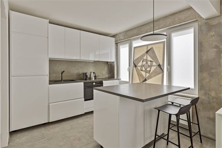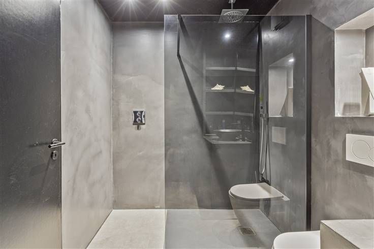 De aan de opslagruimte grenzende bijlage omvat een ruime kantoorruimte van meer dan 60 m², volledig gerenoveerd in 2019, met een lichte en moderne werkruimte. De voorzieningen omvatten een moderne inloopdouche, een toilet, een wastafel en een halfingerichte Amerikaanse keuken. De vloer van gepolijste betonlook-tegels zorgt voor eenvoudig onderhoud.