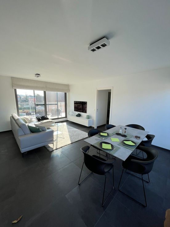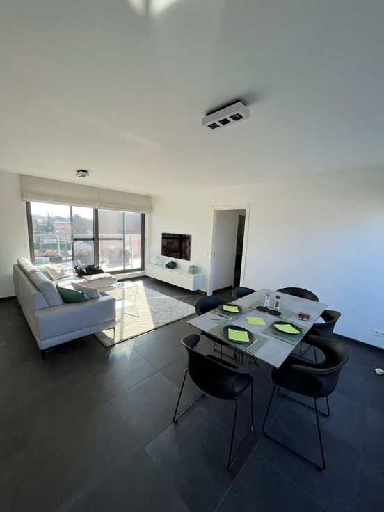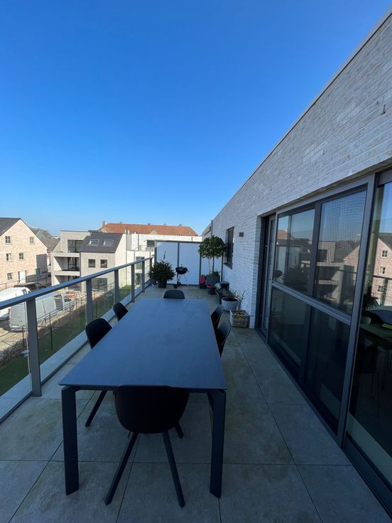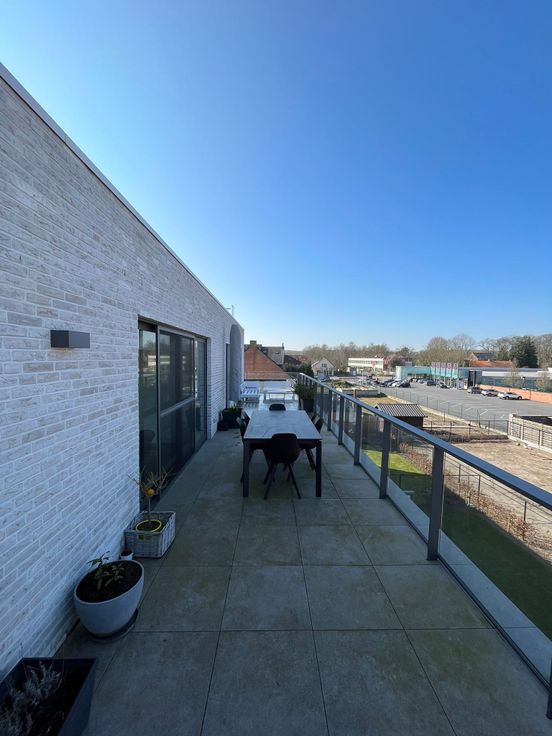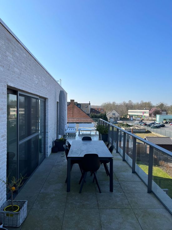Volledig afgewerkte penthouse met twee grote terrassen in centrum Tremelo. Dubbele afgesloten garagebox en extra berging.