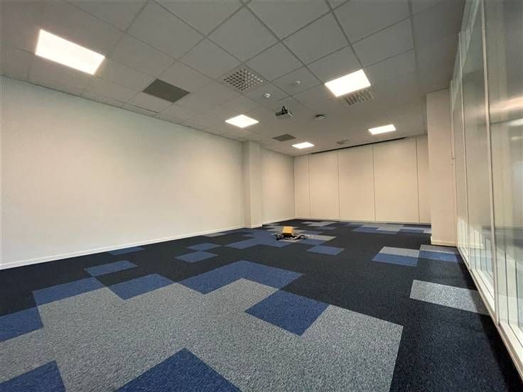 Het kantoor omvat een ruime open werkruimte, een grote vergaderzaal, en zes aparte ruimtes die flexibel kunnen worden gecombineerd of verwijderd, afhankelijk van de behoeften.