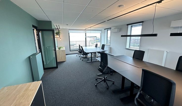 34,93m² gemeubelde en gedecoreerde kantoorruimte met 8 werkplekken en terras in duurzaam en hedendaags kantoorgebouw met grote visibiliteit