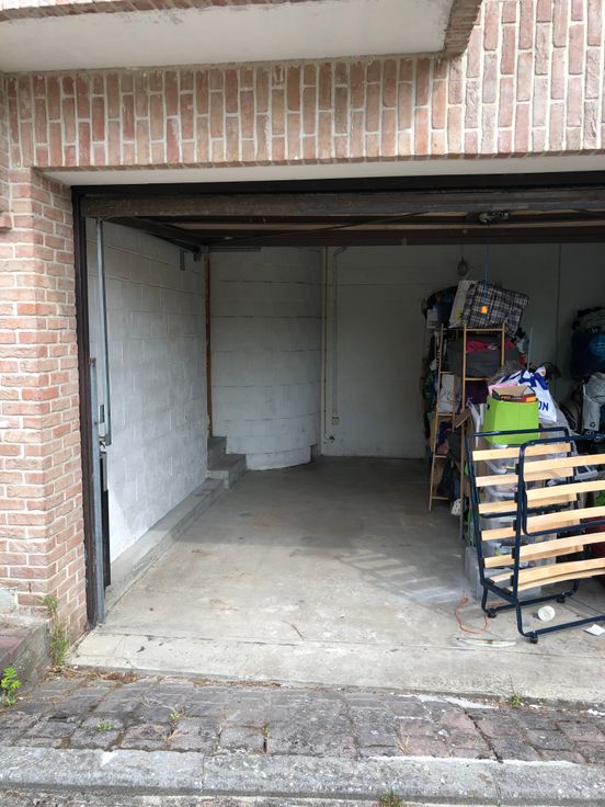 Garage d'environ 5,2m de profondeur sur 2,3m de largeur. Pour stockage matériel divers ou petit véhicule. Ce garage est commun avec un autre locataire qui utilise l'espace de droite. Idéalement situé, accès facile, centre LLN.