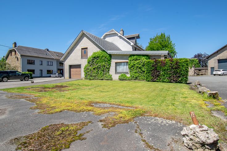 Hâtez vous de découvrir cet ensemble comprenant une vaste maison proposant un garage de 100 m² ainsi qu'une parcelle à bâtir attenante. Outre le potentiel professionnel du bien, notamment via l'aménagement de bureau(x), cabinet, atelier, etc., il permet aisément l'aménagement d'un logement de plain-pied au rez-de-chaussée, un atout indéniable sachant que la construction de bungalow n'est plus autorisée. Le grand garage ainsi que son étage permettraient la création d'un second logement ou d'un logement de vacances (moyennant permis d'urbanisme). Enfin, la parcelle attenante est située en zone d'habitat pour sa totalité, il sera donc aisé d'y installer quelconque future construction.