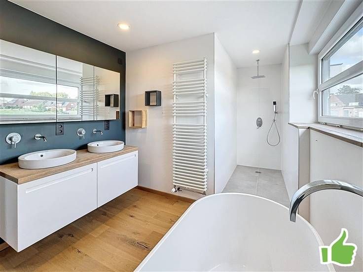 Au premier étage : 2 chambres dont une avec dressing et une superbe salle de bain avec baignoire et douche.