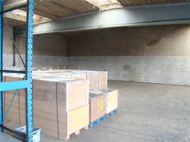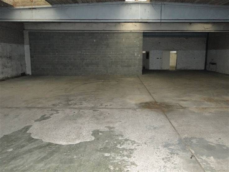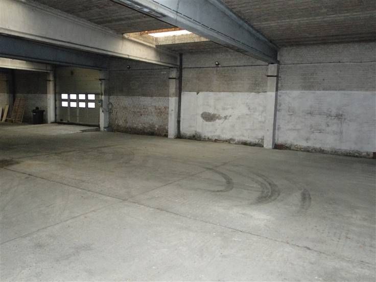 Groot magazijn van 625m² met hoge elektrische poort toegankelijk voor vrachtwagen, dit alles met voldoende parking (in gemeen gebruik met andere firma), ingang via Paalstraat