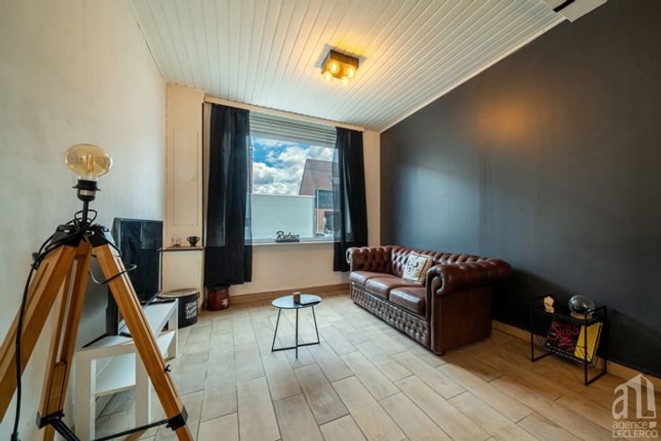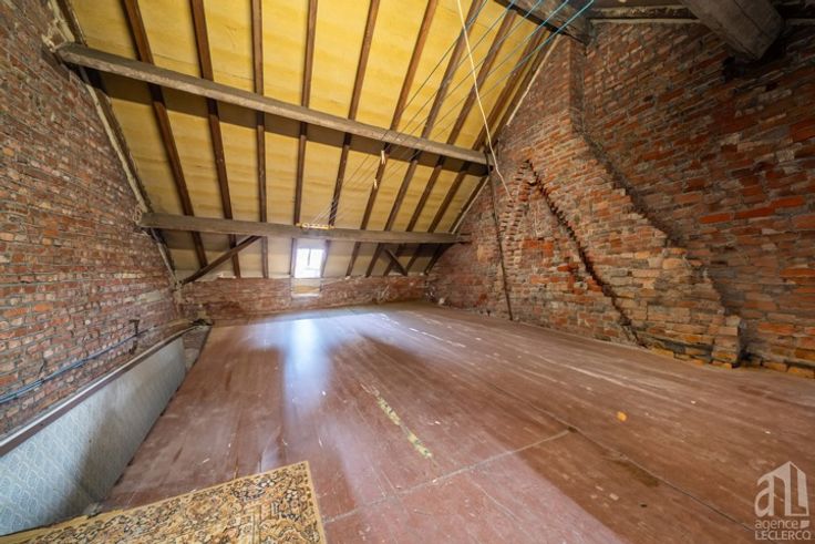 Idéalement située à proximité de toutes les commodités, l'agence Leclercq vous propose cette charmante maison mitoyenne de 3 chambres.  Le bien se compose comme suit :  Au rez-de-chaussée : Un hall d'entrée accueillant menant à une spacieuse et lumineuse pièce de vie, comprenant un salon et une salle à manger. Dans le prolongement, une cuisine équipée, sous une élégante verrière, apporte une touche de modernité et de clarté. Une salle de bains contemporaine avec baignoire et vasque. Petite véranda donnant accès à un charmant jardin.   Au premier étage : deux belles chambres avec vue sur le jardin ainsi qu'une chambre parentale.  Au deuxième étage : un grenier spacieux de plus de 25 m², offrant un beau potentiel pour créer une ou deux chambres supplémentaires selon vos besoins. Si vous êtes à la recherche d'une maison lumineuse à rafraîchir et à personnaliser à votre goût, n'hésitez plus ! Contactez-nous dès maintenant pour organiser une visite.  Caractéristiques : Raccordement gaz - Electricité conforme jusque 2047 - Possibilité de droits d'enregistrements réduits. PEB "E" - soit 402 kwh/m².an - la consommation théorique totale d'énergie primaire de ce logement est de 42 122 kWh/an - N°PEB 20220412001212.  Bien référencé 6032291. Publicité à caractère non contractuel et ne constituant pas une offre. Les propriétaires se réservent le droit de décision, d'acceptation ou non sur toute(s) offre(s) soumise(s) pour leur bien.