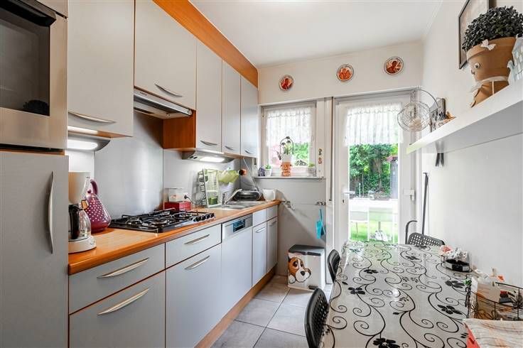 Goed onderhouden appartement (72 m²) met 1 slaapkamer en zuid-oost-georiënteerde tuin (95 m²) in Hoboken. Het pand is gelegen in een doodlopende straat in een rustige woonwijk. Het is vlot bereikbaar met het openbaar vervoer en de auto en ook zijn er een handvol velo-stations te vinden in de nabije omgeving. Het appartement bevindt zich op het gelijkvloers van een kleinschalig gebouw van 2 hoog. De vaste kosten bedragen €60/maand en de verwarming is individueel op gas. De ramen beschikken over dubbele PVC-beglazing. Je komt binnen in de hal, die voor de verbinding zorgt tussen alle aanwezige ruimtes. Vooraan bevindt zich de aparte woonkamer, goed voor een oppervlakte van zo’n 28 m². Centraal treffen we een kamer van 6 m², die veel invulmogelijkheden biedt en hier tegenover situeert zich de badkamer met douchecabine, lavabo en wc. Aan de achterzijde van het appartement bevinden zich de slaapkamer (18 m²) en de aparte keuken (9 m²), die toegang biedt tot de gezellige tuin (95 m²) met zuid-oost-oriëntatie. Tot slot staan er 2 kelderbergingen ter beschikking. Bewoonbare opp. 72 m² ref.: bruto vloeropp. EPC-certificaat. Voor meer info of een gratis schatting surf naar www.hansimmo.be