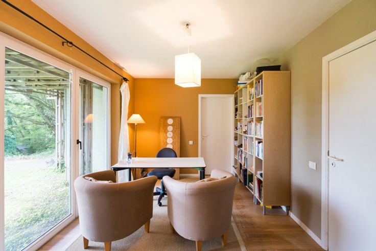 Lasne – Ohain, uit het zicht verborgen, Charmante VILLA (4 SLK/2 BADK/DOUCHERUIMTE/4 KANTOREN) gebouwd in 1986 en uitgebreid in 1991, met prachtige ruimtes en aangename helderheid. Het zuidgerichte perceel van 30a69 ca biedt een vrij uitzicht op een beboste omgeving. Op de begane grond: Entreehal, gastentoilet, mooie woonkamer met een inbouwhaard en vrij uitzicht op de tuin, aangename eetkamer, ingerichte keuken met buiten toegang, voormalige garage die dienst doet als opslag en wasruimte, twee kantoren met uitzicht op de tuin (mogelijkheid tot tv-kamer of speelkamer). Op de 1e verdieping: Nachthal, apart toilet, badkamer, 1e slaapkamer met mezzanine, mooi kantoor op de mezzanine, 2e onafhankelijk kantoor, 2e slaapkamer (ouderlijke suite) met op maat gemaakte dressing, privébadkamer met toilet, zolder, 3e en 4e slaapkamers omgebouwd tot studentenstudio. Bestaande uit badkamer - apart toilet - eetkamer - kitchenette - kantoor op de mezzanine - woonkamer en slaapkamer op de mezzanine, groot houten terras toegankelijk vanuit alle slaapkamers en de studio. Buiten: Privé-oprit, terras toegankelijk vanuit de hele 1e verdieping, mooie glooiende tuin, parkeerplaats. Technische aspecten: Energieprestatiecertificaat (EPC) D, elektriciteit in uitvoering, aansluiting op het riool, propaangas tank (2 jaar), condensatiegasboiler (2 jaar), 200-liter boiler. Ruime villa vol charme, ideaal voor een familieproject, biedt een idyllische omgeving die zonder meer ontdekt moet worden!