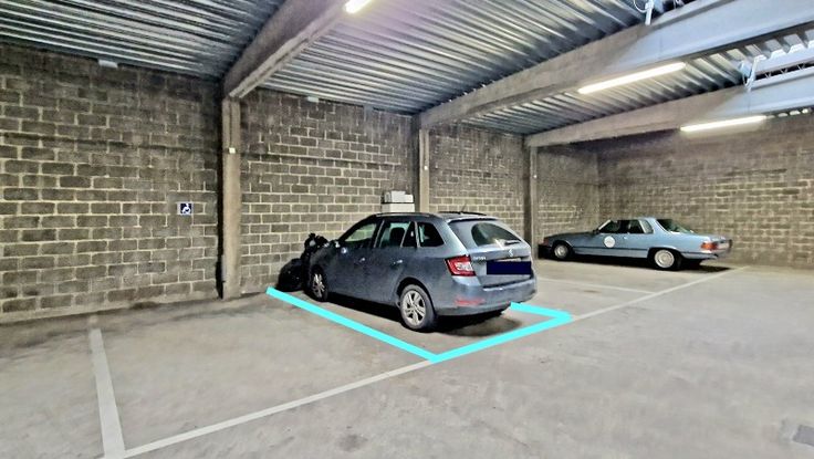 Op het gelijkvloers is een overdekte staanplaats aanwezig.