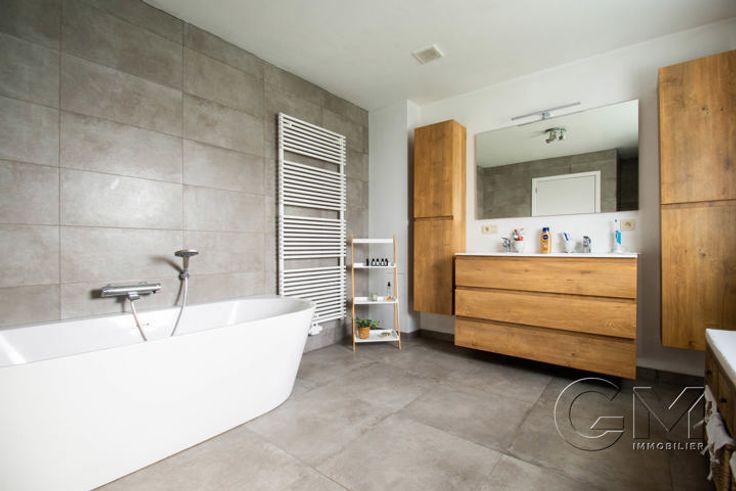 * Au 1er étage : Spacieux hall de nuit desservant 3 grandes chambres et une salle de bain (baignoire, douche à l'italienne, meuble vasque et mobilier de rangement) et second WC séparé.