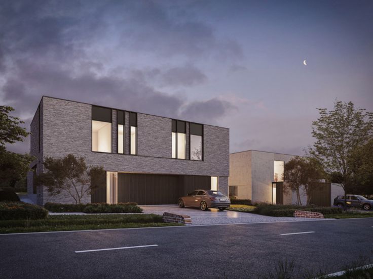 Elk van deze halfopen villa’s blinkt uit door haar sublieme architectuur. Een optimaal gebruik van ruimten en volumes maakt dat het lijnenspel als strak en toch speels wordt ervaren.