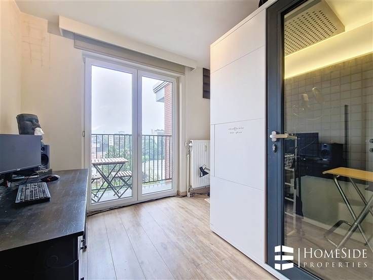 Sorry er is geen nederlandse vertaling beschikbaar. A proximité immédiate du parc Saint-Vincent, des commerces et des transports (bus, tram, train,...). Superbe appartement de +/-75m² en parfait état - 2CH avec 2 TERRASSES dans un immeuble bien entretenu!! - Au 7ème étage/ 8 étages : Il se compose d'une entrée directe sur un spacieux et très lumineux séjour/salle à manger donnant accès à une SUPERBE TERRASSE orientée plein OUEST avec vue panoramique. Une cuisine américaine avec bar, bien équipée (four, taques, hotte, frigo/congélateur, lave-vaisselle, machine à laver, évier, placards). Un hall de nuit desservant deux belles chambres dont une avec terrasse privative, une salle de bains et un WC séparé. - Au sous-sol: Une cave privative. Double vitrage PVC, Porte blindée acoustique, ELECTRICITE CONFORME, Parlophonie/vidéophonie, Ascenseur aux normes, Chauffage collectif au gaz, Antenne GSM sur le toit alimentant directement les comptes de la copropriété en diminution des charges courantes. Informations et visites au 02.567.96.74 ou sur www.HOMESIDE.be