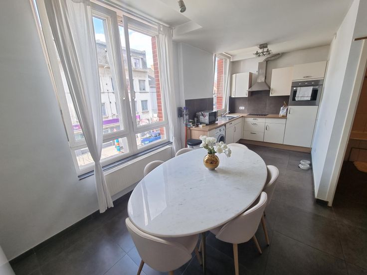 Centre et gare, agréable appartement au 1er étage d'une petite résidence comprenant hall d'entrée, living, wc séparé, cuisine équipée, salle de douches, 1 chambre, cave. LIBRE LE 01/10. candidature par mail à INFO@MCIMMO.BE