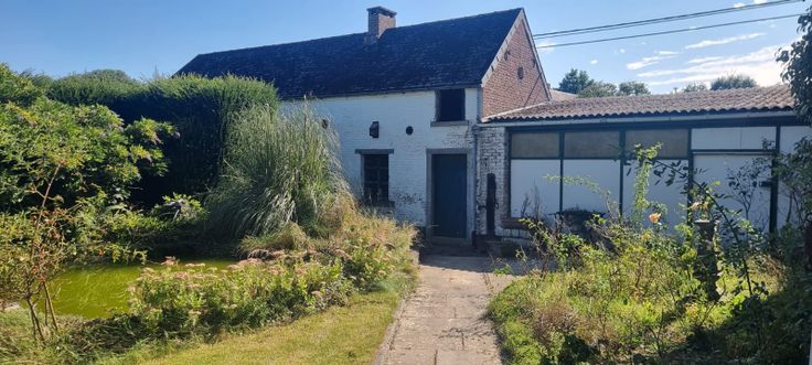 Dans le centre de Feluy, sur un splendide jardin de ± 16 a, ancienne et spacieuse maison villageoise à rénover avec possibilité cabinet pr. profession libérale ou atelier, sur un grand jardin muré.