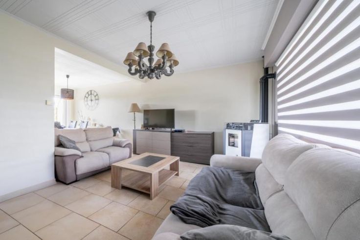 Belle maison comprenant : Au rez-de-chaussée : Un salon, une salle à manger, une cuisine équipée Un WC Une salle de douche Une grande chambre Au 1er étage : Deux grandes chambres Une petite chambre Un bureau/débarras Un grenier Joli jardin clôturé avec terrasse Spécificités : PEB : D Electricité : non conforme RC : 550 € De nombreux travaux ont été effectués : Nouveau feu à pellets Nouveaux châssis double vitrage et nouvelles portes Nouvelle porte garage électrique Nouveau boiler Nouvelle toiture + isolation complète de celle-ci Chauffage central électrique par accumulation
