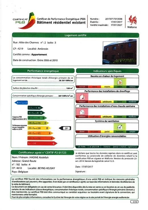 Sorry er is geen nederlandse vertaling beschikbaar. A SAISIR, PROCHE DES COMMERCES, ECOLES ET TOUTES FACILITES, BEL APPARTEMENT 2 CHAMBRES SITUE AU 1ER ETAGE D'UN PETIT IMMEUBLE DE 4 APPARTEMENTS.TRES BON ETAT GENERAL. +/- 100M² HABITABLES. EMPLACEMENT PARKING LOYER DE 900 € par mois (charges communes et assurance incendie comprises). Double vitrage ; adoucisseur ; TOUT CONFORT ; COMPOSITION : Hall d'entrée, toilette, beau séjour lumineux, cuisine entièrement équipée sauf frigo, buanderie, 2chambres et salle de bain. Cave extérieure.