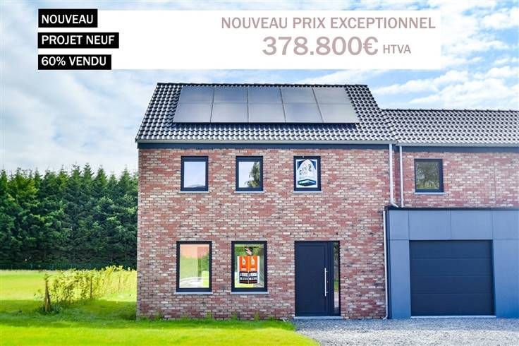 Sorry er is geen nederlandse vertaling beschikbaar. Venez découvrir ce magnifique projet composé de 5 villas de standing finies, hors cuisine avec une excellente performance énergétique (PEB A+), 3 et 4 chambres, terrasses et grands jardins bien orientés, matériaux nobles et finitions haut de gamme. Chaque maison disposera aussi d’un garage avec une porte sectionnelle électrique et jusqu'à 3 emplacements de parking! Grâce à de larges baies vitrées, chaque unité jouit d'une magnifique luminosité et d’un bel espace de vie sans vis à vis! (portes tubulaire, chassis Schuco, insonorisation et isolation de haut niveau, pompes à chaleur Vaillant, VMC double flux,panneaux solaire, chauffage au sol, SDB complètes et finies avec du Hans Grohe,.. ). LIVRAISON PREVUE A L’ACTE ! Maison témoin visitable avec tous les détails visibles. Construction très peu énergivore, durabe et de qualité.Présentation du projet à l'agence. Vente sous régime TVA 21%. www.immo-bertrand.be