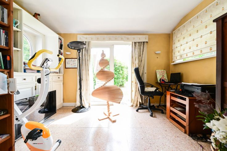 In het hart van de woonwijk van Wezembeek-Oppem, ontdek ons aangename drie-gevelhuis met drie slaapkamers, parking en een op het zuiden gelegen tuin. Gelegen in een klein, rustig doodlopend straatje, bestaat het huis uit: inkomhal, aparte toilet, ruime woonkamer (met een functionele open haard) met een studeer-/leeshoek, eetkamer en grote volledig uitgeruste keuken, wasruimte. Op de eerste verdieping: eerste slaapkamer van 19 m², badkamer met douche, bad en toilet, toegang tot de tweede slaapkamer via een kleedkamer/kantoor of kinderkamer, toegang tot de zolder omgevormd tot een derde slaapkamer. Kelder: opslagruimte en grote garage. Zeer gewild, een must-see!!