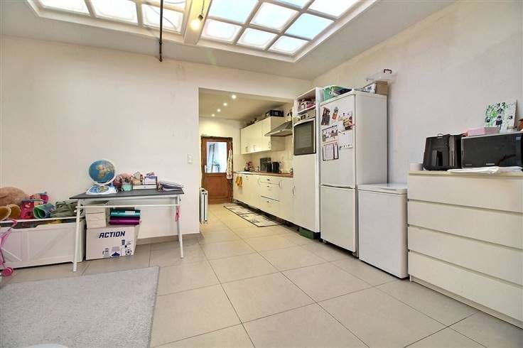 Sorry er is geen nederlandse vertaling beschikbaar. Maison avec de beaux volumes et potentiel d'aménagement Cette maison de 3 chambres, offre de beaux espaces de vie ainsi qu'un agréable jardin, elle se compose comme suit : Au rez-de-chaussée un hall d'entrée accueillant donne accès à l'étage. Le spacieux espace de vie lumineux de plus de 28 m² comprend un salon et une salle à manger. La cuisine, entièrement équipée (four, plaque vitrocéramique, hotte aspirante, évier, lave-vaisselle, frigo encastré), dispose d'un coin repas convivial. La salle de bain contemporaine est équipée d'une douche à l'italienne, d'un WC suspendu et d'un meuble vasque. Enfin, une belle véranda de 16 m² offre un espace de vie supplémentaire et une transition agréable vers le jardin. Au premier étage un hall de nuit dessert deux grandes chambres confortables et une troisième pièce, idéale comme chambre d'enfant, bureau ou dressing... Au deuxième étage un grand grenier de plus de 26 m², accessible via un escalier fixe, offre un vaste potentiel d'aménagement selon vos envies, que ce soit pour créer une chambre supplémentaire ou autre. Extérieurs L'extérieur présente un beau Jardin de +/-120m², une terrasse carrelée et un abri de jardin. Particularités châssis en bois avec double vitrage et persiennes manuelles. Le chauffage central au gaz est assuré par une chaudière Vaillant récente, installée en 2020. Une cave pratique est à disposition pour le stockage, PE