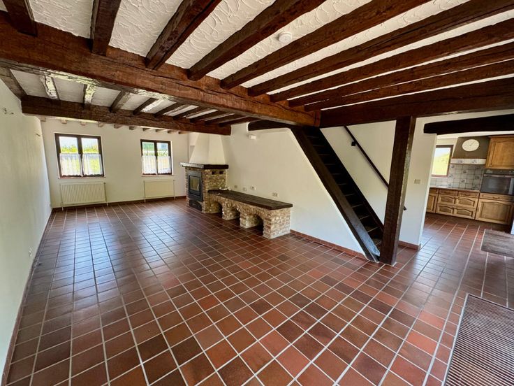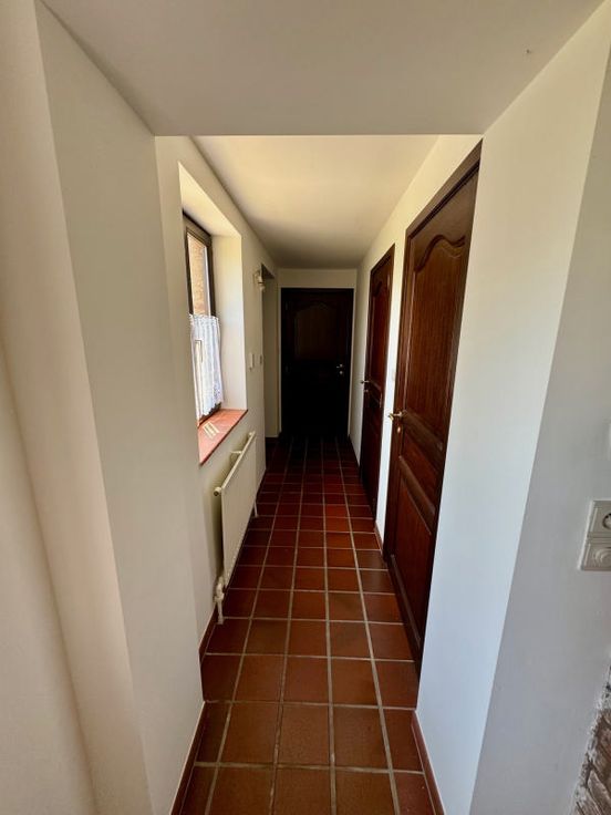 Lasne (réf 2660 B) : Dans une rue très calme et avec une vue sur les champs SANS AUCUN VIS-A-VIS mais proche du centre de Lasne! Très sympathique maison (style fermette) TRES LUMINEUSE. Elle se compose : Au rez-de-chaussée : hall d'entrée, grand salon avec FO, une cuisine équipée, un bureau/salle de jeu/chambre bébé et un WC séparé. Au 1er étage : 2 chambres avec grand débarras sous pente de toiture, 1 salle de bains avec baignoire, wc, bidet et 2 lavabos. Au sous-sol une grande cave (cellier). Grande terrasse en pierre bleue (64 m²) & jardin de 14 ares PLEIN SUD - SUD/OUEST. garage 2 voitures (Gd garage double 60 m² pr atelier,,,) + 4 emplacements de parking. DIVERS : Chauffage au mazout - double vitrage en méranti. PEB = D. LIBRE A L’ACT E. FAIRE OFFRE A PARTIR DE 450.000€ (SOUS RESERVE DE L'ACCORD DES PROPRIETAIRES). Infos & Visites Century 21 Boondael 02/660.21.21 OU www.century21boondael.be