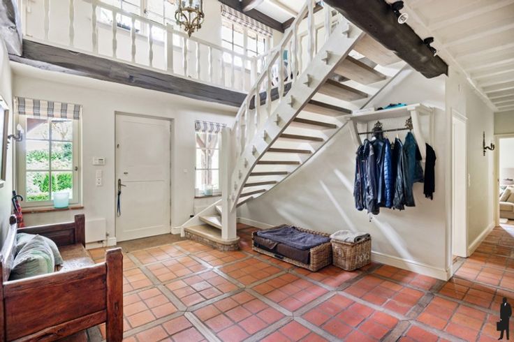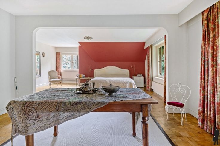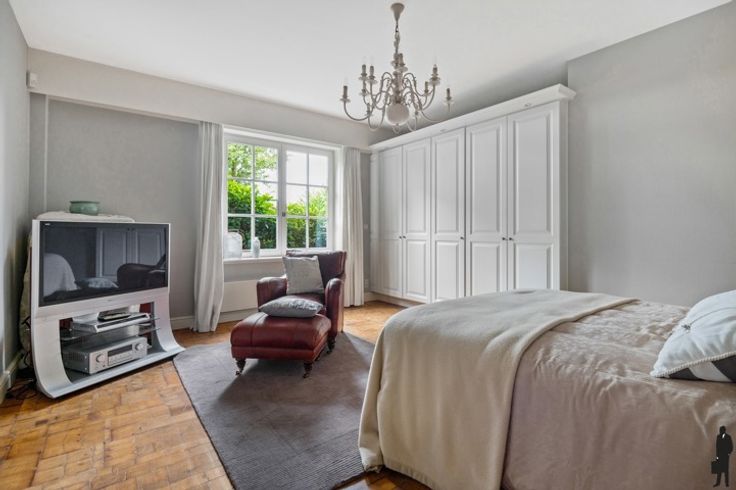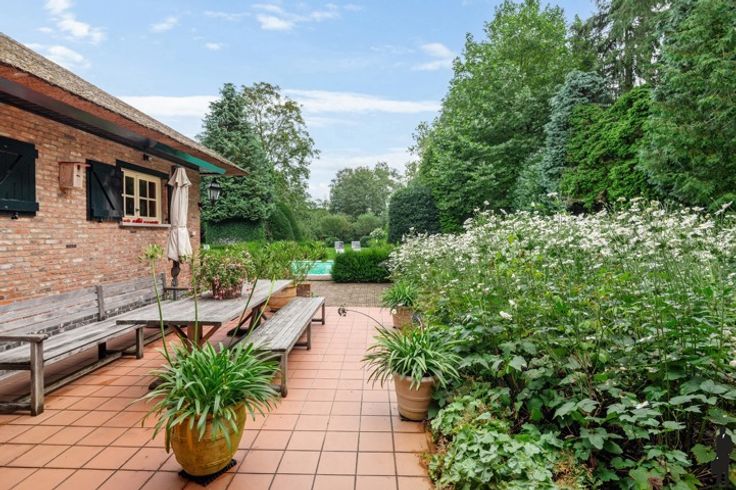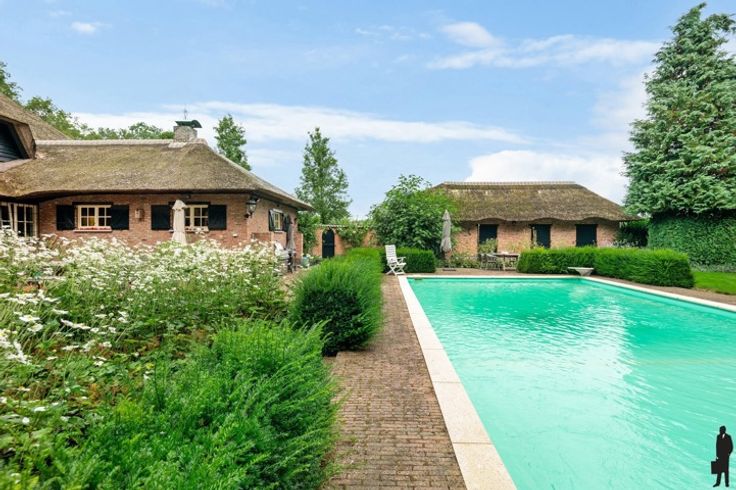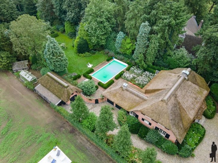 Charmante, vrijstaande luxe villa op een perceel van ca. 4.320m² met veel privacy en zwembad te Essen! Unieke bosrijke omgeving te Essen nabij scholen sport mogelijkheden en het centrum van Essen; centraal voor woon) werkverkeer en openbaar vervoer. Dichtbij de grens (Nederland, Rotterdam, Zeeland, Breda, Antwerpen,..) Deze woning bestaat uit 6 slaapkamers waarvan 2 op het gelijkvloers, 2 badkamers, ruime leefruimte, volledig uitgeruste keuken en zowel inpandige als uitpandige garage voor 4 wagens. Gelijkvloers: inkomhal met gastentoilet en handenwasser, eetkamer, ruime slaapkamer (evt. thuiskantoor/praktijkruimte/2de leefruimte), 2e slaapkamer met kastenwand, badkamer met inloopdouche, dubbele lavabo, toilet en handdoekverwarmer, sauna, keuken voorzien van alle toestellen, bijkeuken, royale dubbele garage + bergzolder, wijnkelder + berging, volledige kruipruimte. Eerste verdieping: nachthal, 4 slaapkamers, badkamer met jacuzzi, douche, toilet, dubbele wastafel en handdoekverwarmer, toegang naar de zolder via vlizotrap. Prachtige en verzorgde groene tuin voorzien van een terras, vijver, carport en serre. Verwarmd zwembad met rolluik en verwarmd op gas.