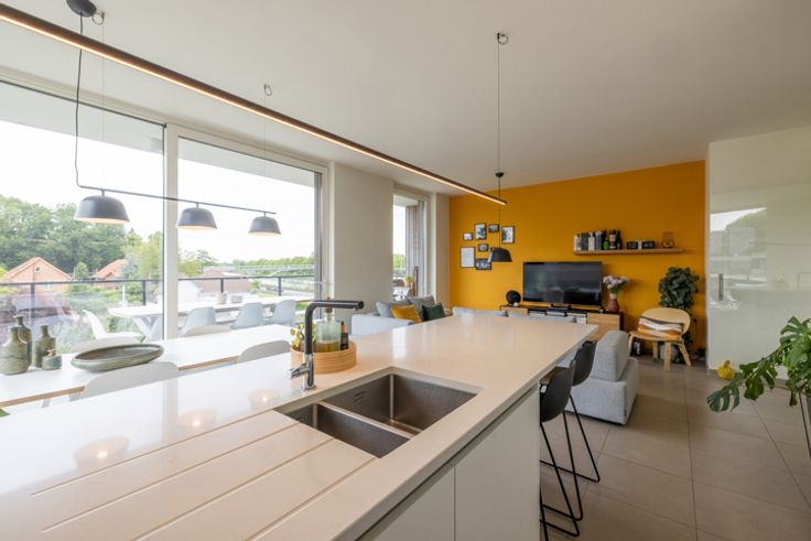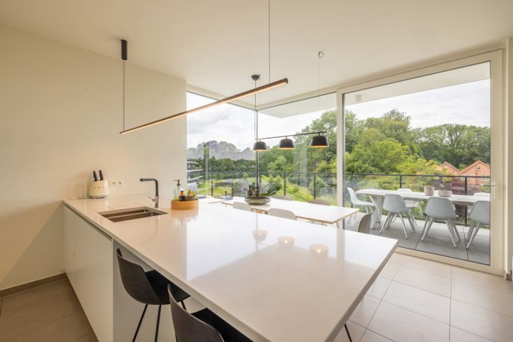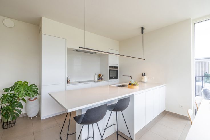 Gelegen op de bovenste verdieping in residentie 'Leebeeks Vijverhof' treft u deze uiterst energiezuinige Penthouse. Exclusief wonen te midden van een groene omgeving, ingebed in een ecologisch landschap, staat hier centraal. U treft er een open zicht op de gemeenschappelijke vijver en parktuin, eveneens bereikbaar via de Leebeekstraat. U waant zich in een oase van rust vlakbij alle nodige winkels, scholen, openbaar vervoer en de fietsbrug richting Gent centrum. Er is eveneens een vlotte verbinding met alle grote invalswegen zoals de E40, E17, N60, N43, R4, A10. Ideaal voor wie graag alles dichtbij heeft. Mobiscore 9/10! Indeling: inkomhal, gastentoilet, aparte berging met technieken, ruime badkamer voorzien van inloopdouche, toilet en dubbele wastafel, 2 volwaardige slaapkamers en een woonkamer met grote open keuken die baadt in het licht en uitgeeft op het prachtige zonnige terras met zicht op de gemeenschappelijke tuin en vijver. Ideaal om tot rust te komen. Alle ruimtes beschikken over vloerverwarming en ventilatie type D, hierdoor wordt het binnenklimaat geoptimaliseerd en energie bespaard. Bij deze penthouse horen 2 overdekte staanplaatsen. Deze zijn verplicht bij te kopen voor een prijs van €20.000 per stuk. Verder is er ook nog een gemeenschappelijke fietsberging aanwezig. Het appartement is, naast de personenlift, ook uitgerust met een mindervalidenlift. Contacteer Bart via 092741558 voor een exclusieve bezichtiging van deze penthouse!