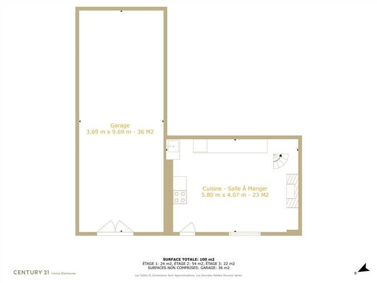 Begane grond: woonkamer, keuken met eethoek.