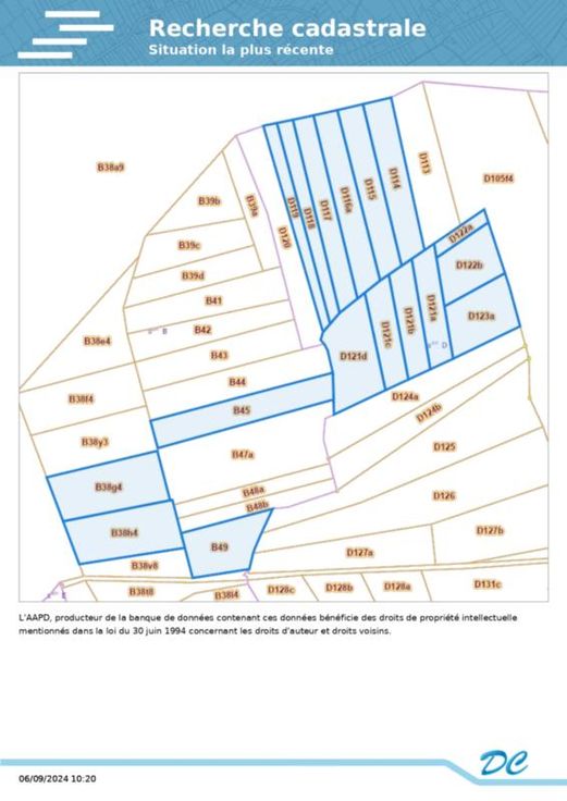 Ce bien est vendu par internet à partir du 14/10/2024 jusqu'au 22/10/2024. Plusieurs parcelles de bois à vendre à Malmedy, Longfaye (Hargister) de 6 ha 3a 90ca, situés en zone forestière pour 3ha 5a 40ca et situés en zone Natura 2000 pour 2ha 8a 50ca. Situation: Les bois se trouvent à 5km à pieds du Signal de Botrange ou à 2km de la Cascade de Bayehon (Longfaye, Malmedy) Coordonnées GPS : 50°28'26.4"N 6°04'14.9"E Altitude environ 580-600mt Chasse : Libre de droit de chasse