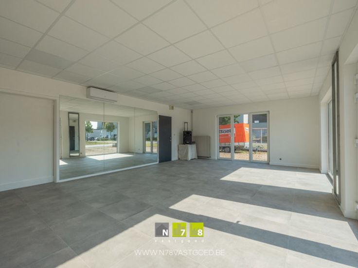 GELIJKVLOERS (992 m²): toonzaal/kantoor, kantoorruimte, berging, toilet, 4 hallen.