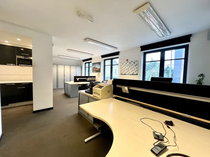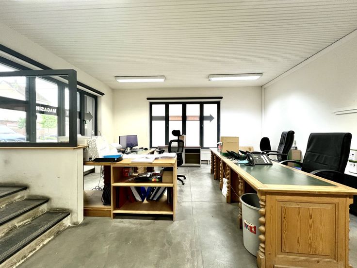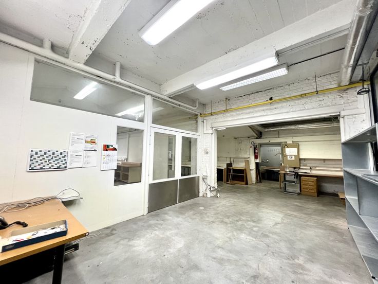 Gelegen in Ukkel, in de onmiddellijke nabijheid van de Ring, het Calvoetstation en Linkebeek, combineert dit prachtige complex voor gemengd gebruik opslag-/werkplaatsruimte, kantoren, een winkel en polyvalente ruimtes. Een zeer aangename werkomgeving. Voorheen een drukkerij. Technische kenmerken: hoogspanningscabine, sectionale poorten, airconditioning, enz. Parkeerplaatsen beschikbaar. Deze uitzonderlijke ruimte kan worden gebruikt voor opslag, maar ook voor een werkplaats en diverse faciliteiten en activiteiten, waaronder een ontvangstkantoor en een winkel die kan worden bekeken vanuit de openbare ruimte. Beveiligd terrein. Vloeroppervlak werkplaats: 1.480 m2 + ingang en parkeerplaats voor vrachtwagens 270 m2. Totaal 1.750 m2 Tussenver dieping boven de werkplaats: Een mezzanine van 200 m2 Draagvermogen 650 Kg per m2 Een mezzanine van 135 m2 met een laadvermogen van 350 kg per m2. Voor een totaal van 1.750 m2 + 335 m2 mezzanines = 2.085 m2 exclusief kantoren. Uitrusting: Automatische deur, hoogspanningscabine, Verisure alarmen, gewapend betonnen vloer met technisch kanaal, verwijderbare mezzanine, werkplaatsverlichting onder mezzanine, gas ventilator convector verwarming, geïsoleerd dak, glasvezel internet, airconditioning in bepaalde ruimtes, Cumulus systeem voor bevochtiging, herenkleedkamer met 2 toiletten, 2 urinoirs, 2 wastafels, 1 douche. 1 dameskleedkamer met 1 toilet. Eetzaal met keuken. Elektrische installatie in perfecte staat, zonnepanelen op het hele dak va