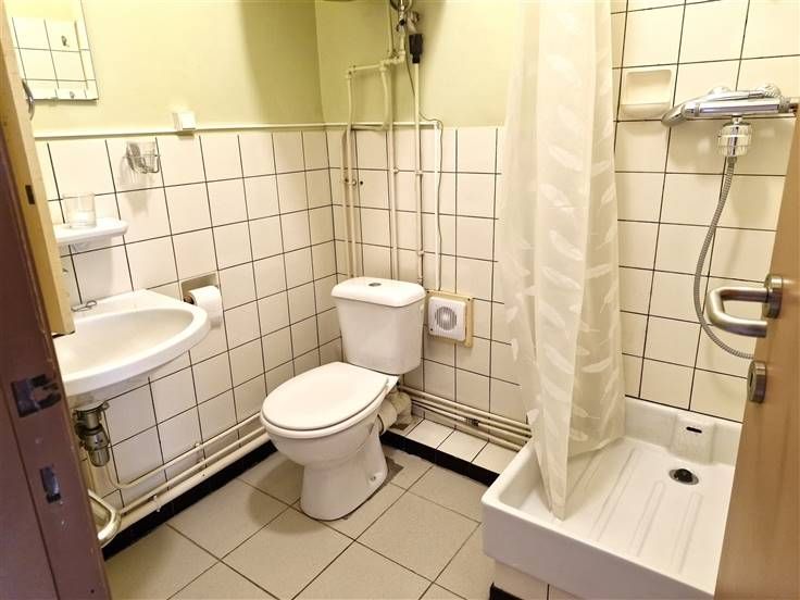 Dit hoek gebouw is gelegen tussen de Antwerpse winkelas en de studentenbuurt. Gelegen op de vierde en hoogste verdieping is dit appartement vooraan gelegen, kant Sint-Jacobsmarkt. Ook het appartement achteraan, kant Apostelstraat staat te koop. Het appartement van ca 60m² komen we binnen in een hal met ingebouwde kasten van waaruit we in de leefruimte komen, wel verzorgd met vernieuwde laminaatvloer en pvc rmen met dubbele beglazing. De ruime slaapkamer ligt ernaast. De keuken is te moderniseren en is ruim, indien gewenst te verbinden met de leefruimte. De betegelde badkamer met douche, lavabo en toilet is in orde maar kan makkelijk worden opgefrist. Mits installatie van een nieuwe ketel kan de epc naar C-label. Privatieve kelderis aanwezig. Voor meer informatie: www.immodelaet.be Interesse in GRATIS SCHATTING van uw eigendom? Contacteer ons! 03/644.00.88 – info@immodelaet.be