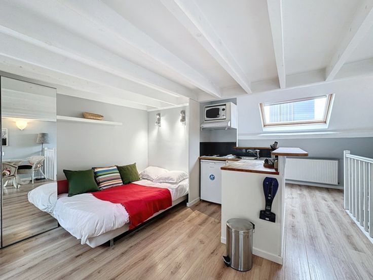 Quartier Européen: de ruime studio op de bovenste verdieping heeft een wasmachine/droger, eigen badkamer, flatscreentelevisie met ASTRA- en Hotbird-satellieten en internet. Het grote dakterras ligt op het zuiden. PEB: C. Kosten: 374€/maand (vast tarief van 319€/maand voor TV, satelliet, internet, verzekering, schoonmaak, wissel van lakens en handdoeken en 24/7 technische bijstand en een provisie van 55€/maand voor verwarming, elektriciteit, koud en warm water). INFO/BEZOEKEN: - www.oralis.be