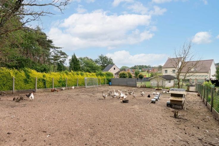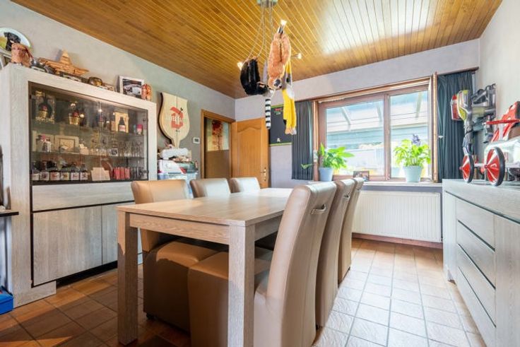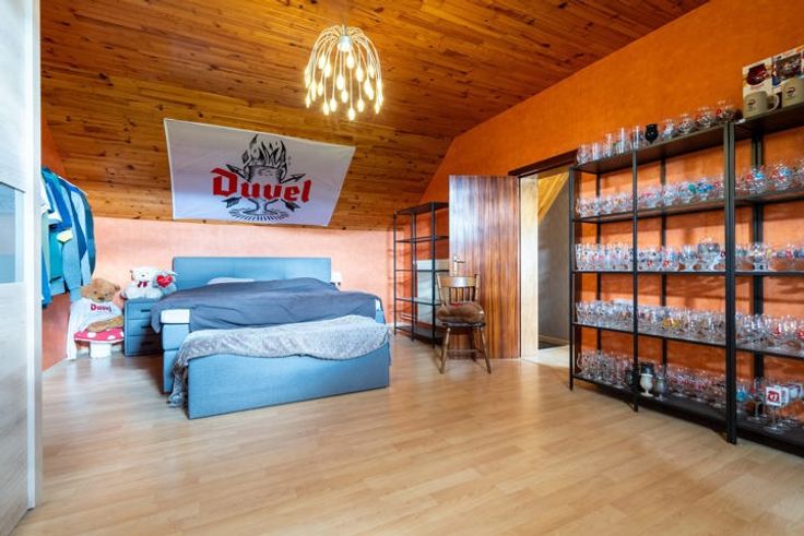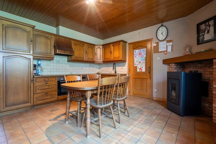 Welkom in Wolfsdonk, Langdorp! Hier geniet je van het beste van twee werelden: alle voorzieningen binnen handbereik en tegelijkertijd een serene omgeving met een uitgebreid netwerk aan wandel- en fietsroutes door de bossen. Je komt binnen langs de inkomhal met gastentoilet die toegang biedt enerzijds naar de royale leefruimte met zit- en eetplaats en de ruime keuken en anderzijds de wasplaats en badkamer. De grote leefruimte is voorzien van een knusse houtkachel. De keuken geeft uit op de inpandige garage waarboven nog een af te werken ruimte bevindt die kan dienen als extra slaapkamer, atelier, bureau… Ook een keldertje is aanwezig. De veranda met zicht op de tuin bevat een pelletkachel, zodat je daar het hele jaar door heerlijk kan vertoeven. De grote tuin is momenteel deels ingericht voor het houden van kleinvee, maar biedt tal van mogelijkheden om naar eigen wens in te richten. Het grote perceel nodigt uit tot het realiseren van al je tuinplannen. Via de vaste trap bereik je de eerste verdieping, hier vind je de 3 volwaardige slaapkamers. De masterbedroom kan zelfs makkelijk gesplitst worden in 2 aparte kamers. Via één van de overige kamers vind je nog een vaste trap naar de zolder. Ook deze kan makkelijk ingericht worden als extra kamer. Kortom: deze uitzonderlijk ruime woning biedt een overvloed aan mogelijkheden om het geheel naar jouw hand te zetten en te transformeren tot jouw droomhuis. Benieuwd? Boek snel jouw bezoek ter plaatse!