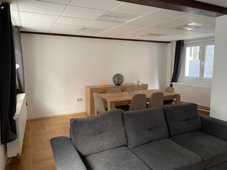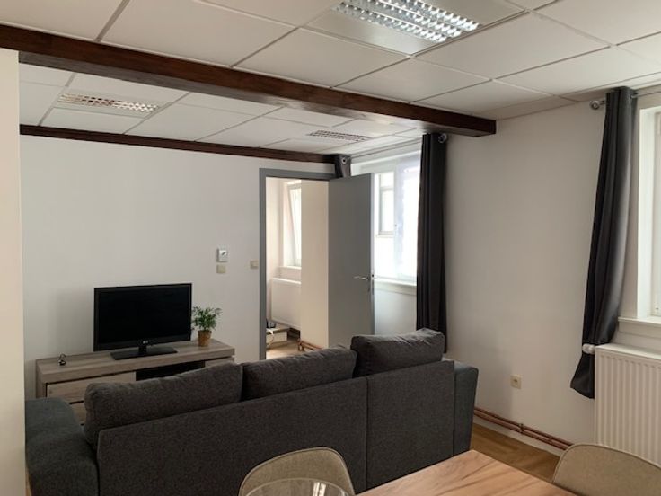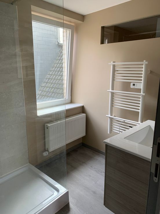 Maison 2 façades, bel étage, entièrement rénovée (intérieur et extérieur) +/95m², très lumineuse et très bien située à Thuin à la ville haute à 50 mètres du Beffroi (Place du chapitre).