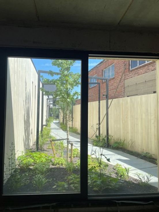 De ingang bevindt zich vooraan Schaluin. Er is een doorgangsweg die het Schaluin verbindt met de A. Reyerslaan. De kantoorruimte of handelsruimte heeft een aparte stockageruimte van 9 m2 en een apart toilet. Aangezien het gaat om een nieuwbouw is alles volgens de recente normen afgewerkt en zeer energiezuinig.
