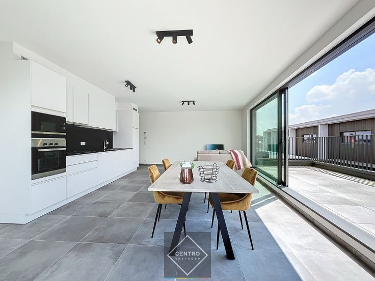 6% BTW MOGELIJK (mits voldaan aan de voorwaarden)  PENTHOUSE (± 100m²) met 2 slpks, RUIME zonneterrassen, en een private berging op gelijkvloers! INDELING: Vierde verdieping: Inkomhal - RUIME LICHTRIJKE living met open ingerichte leefkeuken (o.a. met inductie kookplaat, dampkap, oven én microgolf Siemens, dubbele spoelbak, grote frigo met diepvriesvak én vaatwasmachine)  - ruime bergplaats met ventilatiesysteem "D" DUCO en aansluitingen was- en droogkast, verwarmingsinstallatie voor de vloerverwarming en radiatoren - gastentoilet (met lavabo) - badkamer met dubbel lavabomeubel en inloopdouche - 2  slaapkamers (waarvan 1 master met ruimte voor dressing) -  vloerverwarming (living en gang) en radiatoren (slpks) - aangename ZONGERICHTE terrassen aan de living (buitenverlichting en waterkraan)! Gelijkvloers: - Private berging 1,68m² (B.08). - Ruime gemeenschappelijke fietsenstalling en ruimte voor vuilnisbakken. AFWERKING: Geschilderd - voorzien van alle lichtarmaturen - instapklaar ! LIGGING: Gelegen tussen het historische Baggaertshof en het nieuwe "K" shoppingcenter (50m). Zorgeloos wonen in het bruisende centrum van Kortrijk met alles op wandelafstand (winkels, horeca, apotheek, banken, etc.). Parkings te huur op jaarbasis om de hoek:  parking Veemarkt. Opmerkingen: - Grondwaarde onder registratierechten en constructies onder BTW-stelsel (6% mits voldaan aan de voorwaarden). - Vermelde verkoopprijs is excl. aansluitingskosten, kosten landme... Renovatieplicht: onbekend