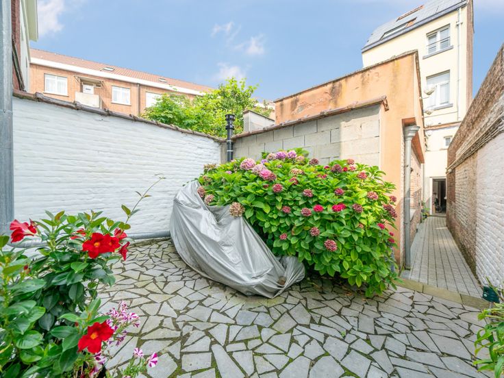 Via een voetgangerswegje hebben we toegang tot de achtergelegen woning. Deze woning is dé definitie van instapklaar: keuken, badkamer, vloeren en de elektrische installatie werden gronding aangepakt in de voorbije jaren. De elektrische installatie is bijgevolg conform tot 2042. Verwarming gebeurt met een Vaillant gaswandketel die dateert van 2014. Alle beglazing (op één koepel na) is hoog rendement beglazing, de roofing van het plat dak én het hellend dak werden volledig vernieuwd en geïsoleerd, net als de achtergevel. De gelijkvloerse verdieping omvat een aangename leefruimte met moderne, volledig geïnstalleerde keuken, een badkamer/wasplaats (4m²) met toilet. De keuken geeft toegang tot een goed georiënteerd stadstuintje waar je in alle rust kan genieten. Vooraan de woning ligt tevens een koertje waar bijvoorbeeld fietsen kunnen gestald worden. De verdieping voorziet een 1ste grote slaapkamer (15m²), een badkamer met douche, bad en een 2de toilet alsook een berging. De 2de verdieping biedt plaats aan nog 2 correcte kamers (11,5 – 13m²). Eén van beide kamers geeft via een zolderluik toegang tot een zolder die net als de kelder dienst kan doen als opbergruimte. Gelegen op wandelafstand van openbaar vervoer en alle nodige faciliteiten. Deze woning is ideaal als starterwoning. Wees er snel bij!